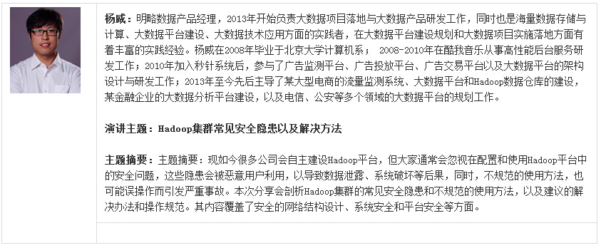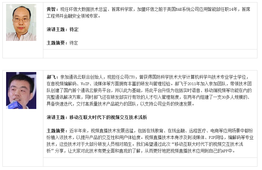 在当前这个信息量大爆发的时代下,无论是对于移动应用开发者还是传统企业用户来说,数据都已经成为了非常重要的商业资产,而怎样更好的利用这些数据来提升应用运行性能及用户体验或是如何更有效的满足业务需求,则成为了开发者与企业需解决的关键问题。本专场活动将邀请来自大数据及移动应用服务相关供应商的Hadoop、机器学习、开源、即时通讯等领域的技术专家,分享各自在全民大数据化背景下的最新技术实践经历,内容涉及前端数据收集、数据分析模型建立、数据分析平台架构、大数据实时交互处理、大数据安全等多个方面。