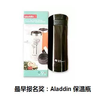 现在立刻报名,将有机会赢取精美奖品!前二十名报名观众更可现场兑换 Aladdin 保温瓶哦!
