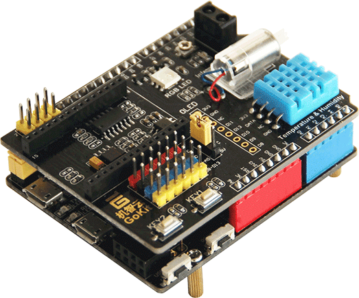 Gokit:兼容Arduino和Intel Edison,集成了Wi-Fi模块、LED灯、温湿度传感器、红外光感、马达等部件,非常适合用来做原型构建,配合云平台支持,可以进行简单快速的智能硬件产品开发。