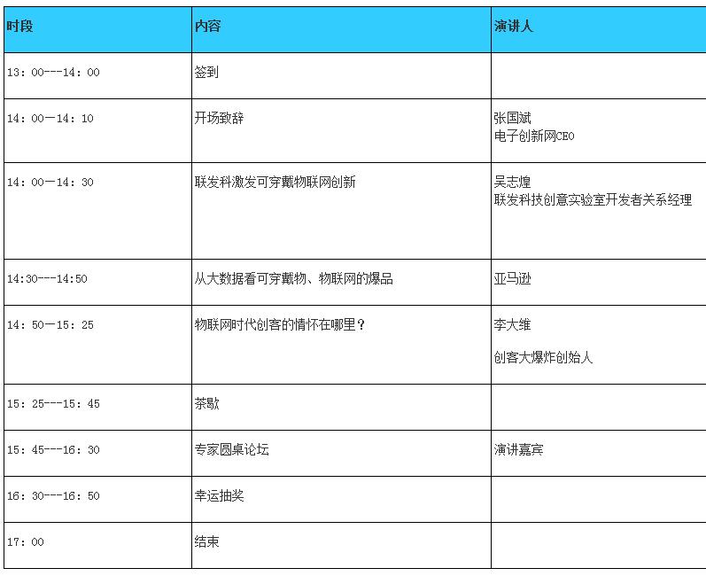 继成功举办联发科LinkIt™ ONE可穿戴物联网深圳技术沙龙活动后,联发科LinkIt™ ONE可穿戴物联网北京上海技术沙龙活动开始报名了!!!深圳技术沙龙有联发科、柴火空间、华为和佰维存储大咖登台演讲,围绕可穿戴产业链分享了可穿戴产品创新的思路,LinkIt™ ONE平台开发、华为荣耀小K儿童手表开发以及系统级封装(SIP)对可穿戴产品的颠覆,吸引了大批可穿戴物联网业者到会互动,现在,联发科LinkIt™ ONE可穿戴物联网北京上海技术沙龙活动开始报名了!我们邀请到联发科、亚马逊、中国物联网产业协会副理事长兼秘书长柏斯维,创客大爆炸创始人 李大维到场演讲,他们将分享有关可穿戴和物联网发展的洞见,欢迎报名!