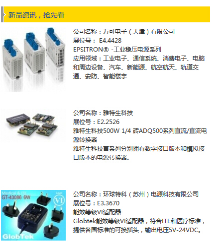 为了满足工业4.0时代的要求,2016年3月慕尼黑上海电子展(electronica China) 与电力电子厂商紧密合作,竭力展示将开创电力电子新技术时代的全新解决方案。除了每年展示亚洲最大的“电源主题展区”外,同期将配套“国际电力电子创新论坛”,凝聚全球各大厂商,推动产业发展。
