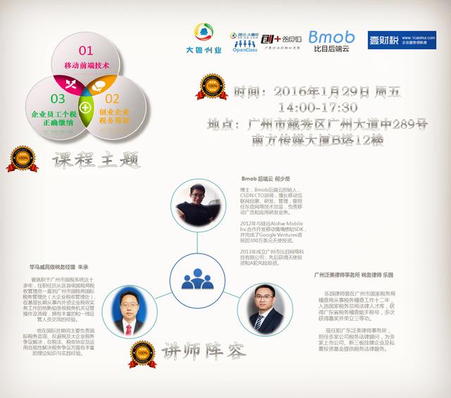 传统的公开课一般只会有一个主题,而本期的创+公开课将会请来三位专业导师,定下三大主题,为创业者小伙伴们解决好创业道路中所遇到的坑。