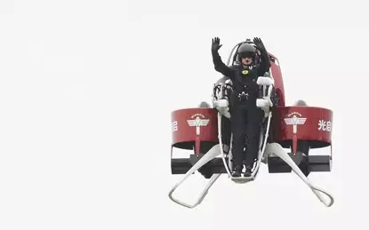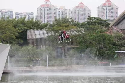 光启马丁飞行包在中国境内的首次公开载人飞行!