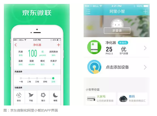 借助电商的垄断优势,京东和阿里都分别针对智能硬件专属销售品牌“京东智能”和“阿里智能”,而为了解决销售的智能品牌杂多,需要安装多个APP的问题,两个电商大佬纷纷抛出超级APP的概念,让更多的设备的控制够集成在一起,并且设备之间可以互相发现在同一平台的对方,但目前并没有能够达到设备之间可以联动操作的效果,APP和云端的作用还是以控制为主。综合看来,京东和阿里的价值在于帮助智能硬件打通电商的销售渠道,而从实际发货数据来看并没有太大突破,很难有过十万的单品,因此电商是否能起到教育用户的作用,有待进一步考量。
