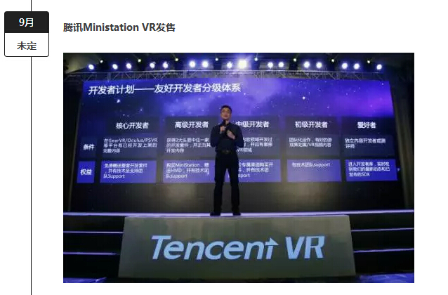 05年11月腾讯的发布会上说与Ministation搭配的VR硬件将于2016年第三季度发售,类似于PlayStation的VR,当时传出的预计售价为2000元。