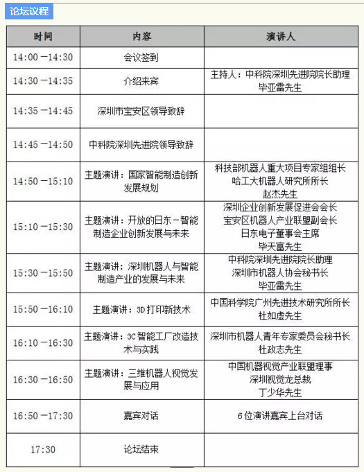 在深圳市宝安区政府的大力支持下,“宝安区智能制造高峰创新论坛”计划于2016年3月30日在深圳宝安区桃花源科技创新园举行。本次论坛由深圳市宝安区人民政府和、中国科学院深圳先进技术研究院主办、宝安区科技创新局承办,深圳市科技创业服务中心和深圳市机器人协会协办。论坛特邀请了国内和香港的著名专家学者做主题报告,还邀请一至两位著名企业的专家出席演讲,主题围绕智能制造的创新与发展问题展开,旨在推动智能制造产业技术、产业发展和服务的创新。深圳及宝安区高新科技企业、科研机构与高校代表约300人也将参加此次活动。