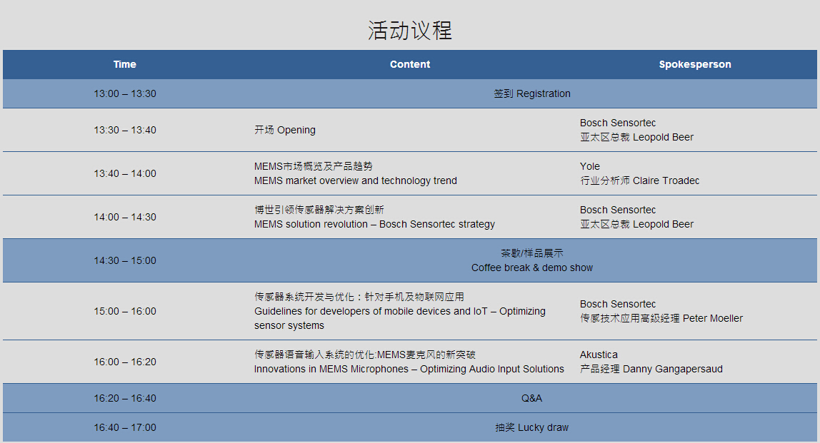 此次Bosch Sensortec再度举办科技论坛会,与您分享产业趋势及技术发展。机会难得,不容错过!