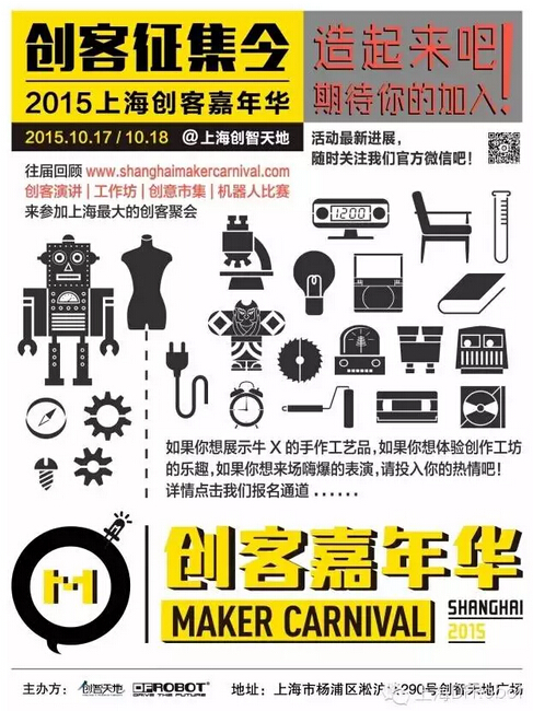 今年的活动将更加丰富、更加好玩儿。创客们集结起来,如果你想让世界看到你的作品,分享你脑中的Idea,赶紧来报名参加我们的上海创客嘉年华。