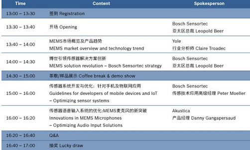 此次Bosch Sensortec再度举办科技论坛会,与您分享产业趋势及技术发展。机会难得,不容错过!